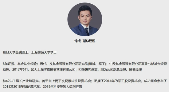业内人士透露:“钟成在此前曾为上海汐泰投资的研究总监,并管理部分产品,后转为投资经理,并任上海汐泰投资的副总经理,目前仍在公司管理产品。”