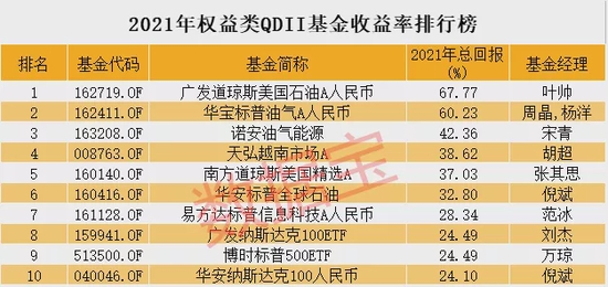 权益基金排行榜:一人独揽双冠,“无茅”“无锂”也称王,2021年多只QDII基金跌逾40%