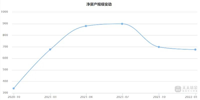 以此前的爆款基金易方达蓝筹精选为例,2021年一季度,在极高的人气下,基民高喊“坤坤永相随”,前赴后继地相约“醉酒”,该基金也是各平台的热销产品。当季,该基金规模快速扩张到880亿元,成为主动权益类基金中的巨无霸。与规模曲线相似的是这只基金的业绩走势,2021年2月,该基金净值创出历史高点后开始下跌,基金规模又同步出现了流失。