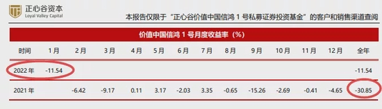 此前,知名百亿私募正心谷也因亏损太多上了热搜。在1月底的线上沟通会中,正心谷创始人、灵魂人物林利军曾表示,公司对于目前的市场研判很有信心:“我们的产品以2+1为主,还有努力的时间。” 但《红周刊》记者从投资人处获得的“价值中国信鸿1号私募基金”最新月报却显示,去年12月净值跌幅达4%以上,去年全年跌幅超过30%。元旦后市场大幅下杀,价值中国信鸿1号今年1月又跌去11.54%。