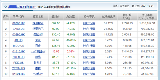 这并非个例,富国基金旗下的港股通互联网ETF更是港股互联网龙头的聚集地。