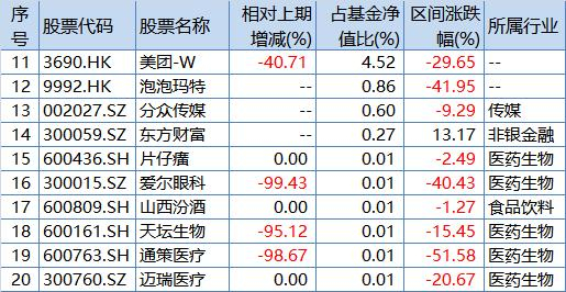 其中,泡泡玛特、分众传媒、东方财富均为新晋上榜。美团、爱尔眼科、天坛生物、通策医疗均遭到大幅减持。