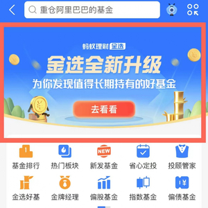 经过了一两周的蚂蚁理财金选基金的灰度测试之后,在近日蚂蚁金选基金的2.0版本正式上线。