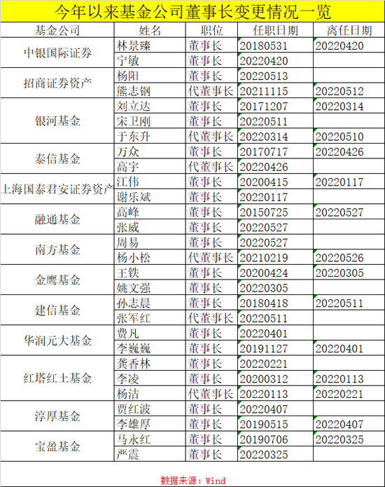 除了融通董事长新任之外,今年还有南方基金、建信基金、宝盈基金、银河基金、金鹰基金等董事长离任;而同期严震任宝盈基金董事长,于东升任银河基金董事长,姚文强担任金鹰基金董事长,基金公司的重要掌舵人陆续完成了新老交替。