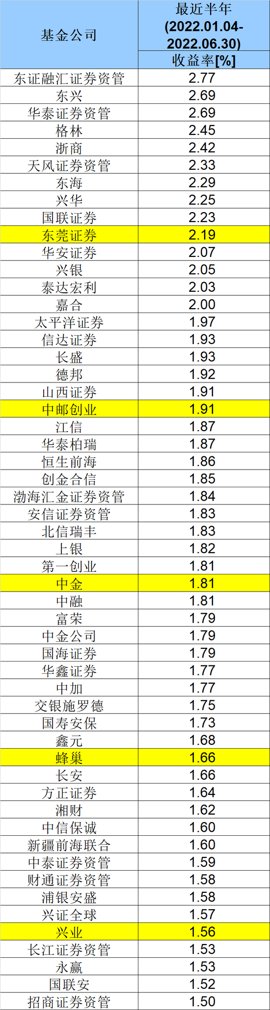 前半年13家收益超2%