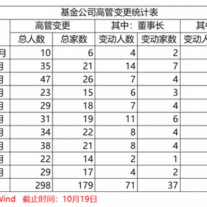 今年以来,基金公司高管变动频繁。Wind数据显示,截至10月19日,今年以来共有298名高管变更,涉及179家公司。其中,共有35家基金公司总经理发生更换,年内变动人数高达58人。