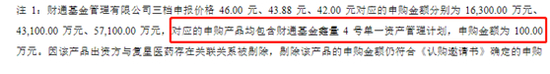 在7月27日《上海复星医药(集团)股份有限公司非公开发行A股股票发行情况报告书》中,附注小字提及,财通基金管理有限公司三档申报价格46.00元、43.88元、42.00元对应的申购金额分别为16,300.00万元、43,100.00万元、57,100.00万元,对应的申购产品均包含财通基金鑫量4号单一资产管理计划,申购金额为100.0万元,但除此之外,复星医药方面均以财通基金整体作为发售对象。