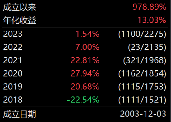 而广发聚富混合则由我们此前聊过的林英睿管理,成立时间更长。林英睿在2018年末接手,整体表现比较均衡,牛市赚的少,熊市亏得也很少,2022年还能盈利7%。