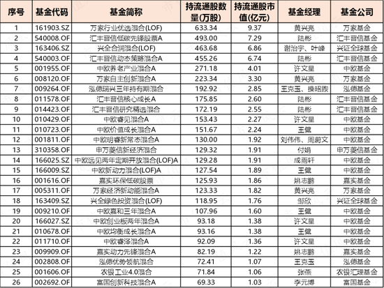 截止今年一季度末,中科创达的公募基金持仓占比为11.93%,下表为重仓该股的基金名单: