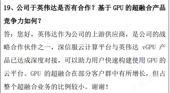 深信服表示,英伟达是公司的战略合作伙伴之一。