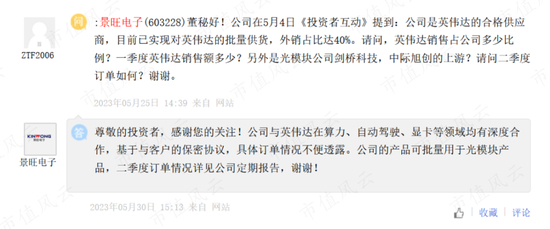景旺电子在5月30日表示与英伟达在算力、自动驾驶、显卡等领域均有深度合作。另外,公司的产品可批量用于光模块产品。