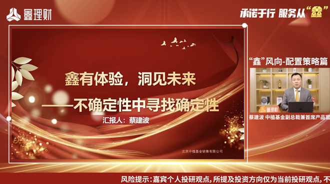 基于此,北京中植基金销售有限公司(以下简称:中植基金)近日在线上召开“承诺于行 服务于‘鑫’”半年度投资策略会,中植基金副总裁兼首席产品官蔡建波与国投瑞银基金投资部总经理桑俊现场分享市场预测与科学规划财富管理的专业观点,关注投资者理财需求,共同解析财富答案。