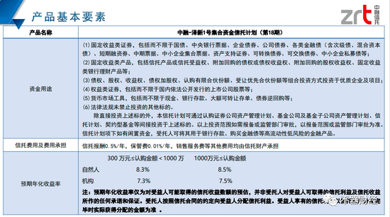 (“泽新1号”推介材料中约定的资金投向)