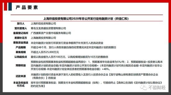 (由上海炽信投资有限公司与宁波梅山保税港区创绩资产管理合伙企业(有限合伙)发行的定融产品推介材料的介绍)