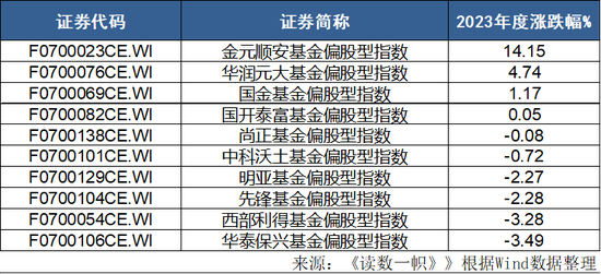 2023年,偏股基金业绩排名第一的是金元顺安基金,年内涨幅为14.15%。此后依次为华润元大基金、国金基金和国开泰富基金,涨幅分别为4.74%、1.17%和0.05%,这也是全市场上有正收益的四家基金公司。