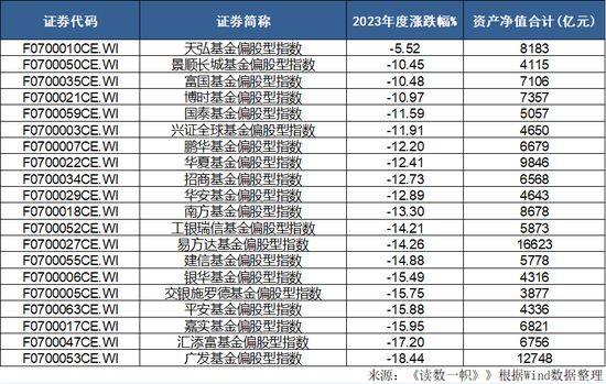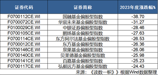 下面为2023年偏股型基金跌幅最大的10家公司,多数也是小型基金公司: