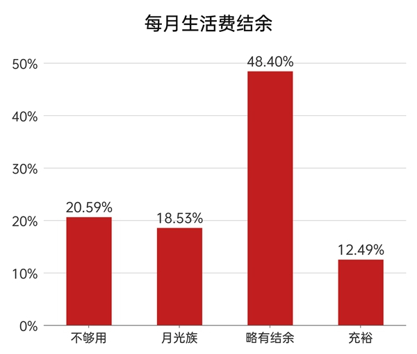 调查显示,超六成同学表示能够有计划地开展每月开支安排。同时,近四成大学生每月可支配生活费多于2000元,有较多能力去满足基础生活、学习以外的需求。