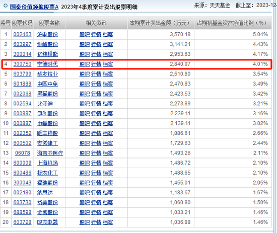 值得注意的是,进入4季度,被“跌蒙”的王阳,一怒之下割肉清仓了宁德时代。同期的价值领航十大重仓股中再无宁德时代。持仓变动数据显示,2023年价值领航割肉清仓卖出2841万元的宁德时代。