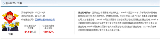 据Wind数据,截至2020年12月31日,王阳的管理规模约110亿元。其中,国泰智能汽车、国泰智能装备、国泰价值精选近一年的净值增长率分别达112.38%、97.22%、63.67%,跑赢同期沪深300指数27.21%的涨幅。