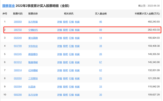 持仓变动数据显示,2022年上半年,国泰基金旗下89只基金,在王阳的带领下动用26.24亿元的基民血汗钱,接盘买入股价相对高位的宁德时代。