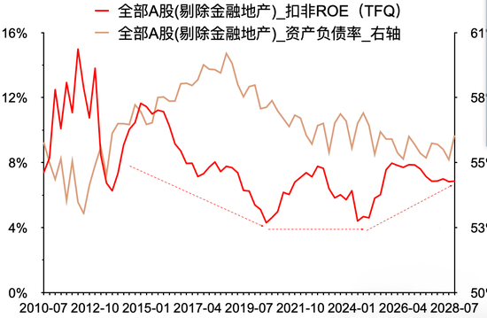 所以从这个维度上来讲,如果这个循环被打破,那么万得全A扣掉金融和石化的ROE,可能就会迎来长期的向上拐点。