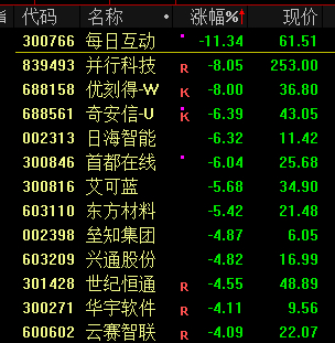 下跌方面,DeepSeek概念股走势分化,每日互动跌超10%