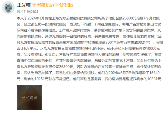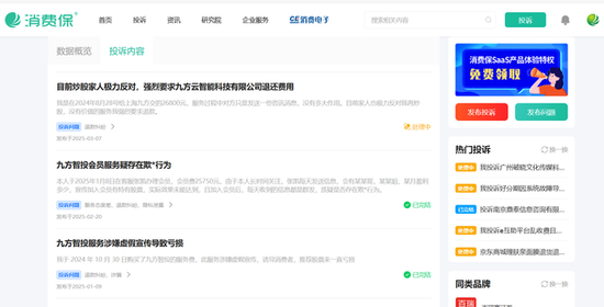 此外,在黑猫投诉、消费宝等消费者服务平台上,不时有消费者针对九方智投的投诉,其中不少用户指称九方智投旗下产“会选股”等APP存在涉嫌虚假宣传、诱导投资导致亏损等问题。仅初步统计,今年截至3月首周,上述平台相关投诉合计已超十条。