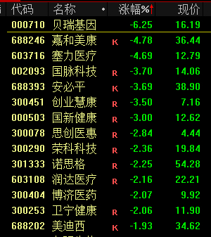 下跌方面,AI医疗概念股走低,贝瑞基因跌超6%。