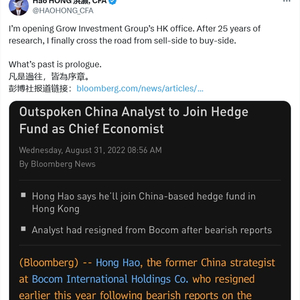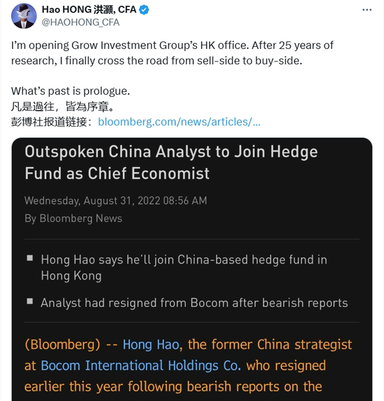 3月24日消息,洪灏将于4月正式加入华福证券国际,出任行政总裁(CEO),继续驻香港工作。这意味着,他从交银国际卖方研究转向买方投资(思睿集团首席经济学家)之后,时隔三年再次回归中资投行。
