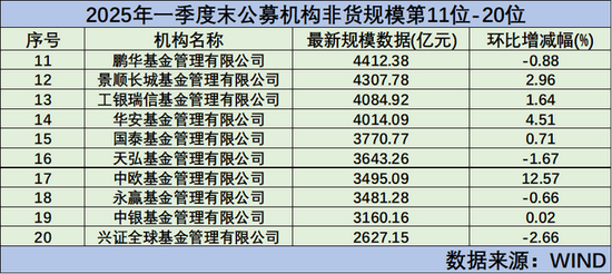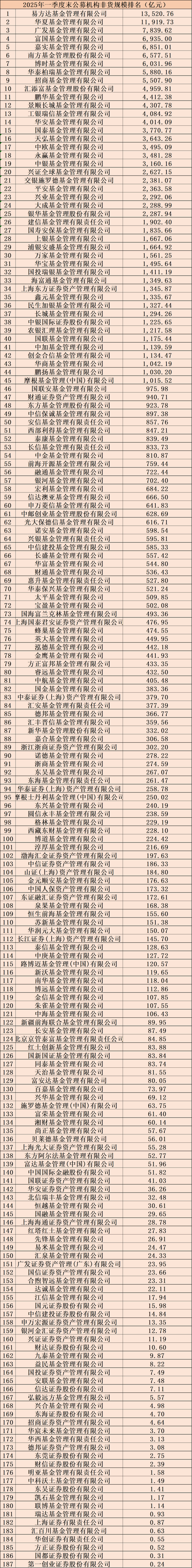附下图:2025年一季度末公募非货规模排名