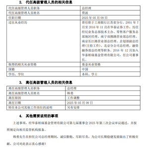 5月9日晚间,华泰柏瑞基金发布高管变更公告称,因工作调整,韩勇不再担任公司总经理。在总经理空缺期间,暂由公司董事长贾波代行总经理职务。