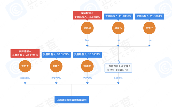 2015年8月,范思奇与唐靖人携手开启共同创立了靖奇投资,前者专注于统计建模在证券及期货市场的开发应用,后者担任风控官,二人分工明确,为公司的起步奠定了基础。2021年茅诺平的加入,形成了范思奇42.7%、唐靖人28.6%、茅诺平28.6%的股权格局,看似稳固的“三足鼎立”,却在今年6月被彻底打破。
