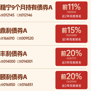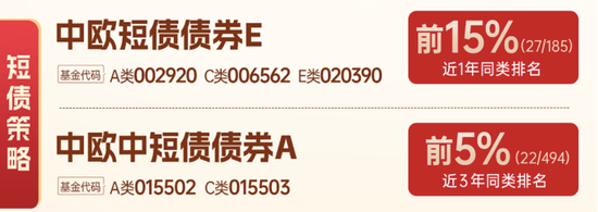 在《中欧稳策略|够稳才出众!中欧基金发布【稳】策略成绩单》中,中欧增强回报债券(LOF)E近1年同类排名前12%、近2年同类排名前8%;中欧鼎利债券A近1年同类排名前15%。这两只债券均由邓欣雨管理。