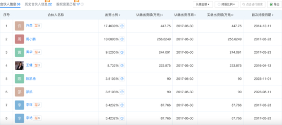 上海睦亿投资管理合伙企业(有限合伙)除了陈凯杨,还有另外37位合伙人,其中包括黄华、王健等人。