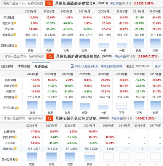 此后,刘彦春还在不断增持家电龙头股、银行股、医疗股等。这些股票在2017-2020期间的良好表现,让其管理的基金在这四年中取得了优秀的业绩回报,两只基金连续四年同类排名优秀,虽然2018年景顺长城新兴成长混合亏损15.63%,但依然要优于同类平均亏损22.88%的业绩。