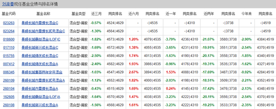 投资风格多年不变,这也导致刘彦春在管基金的业绩颇为惨淡,不管是近两年还是今年以来同类排名,均处在垫底水平。市场上一共4519只同类基金,今年以来刘彦春管理的6只产品排名均在4200名开外。