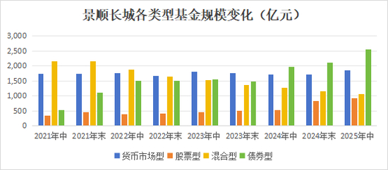 从景顺长城的基金总规模来看,近年来整体处于持续增长趋势,截至2025年上半年末总规模6574.55亿元,行业排名20,其中非货规模4720.89亿元,行业排名12。
