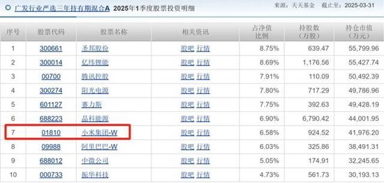 2025年一季度,泡泡玛特还不在前十大重仓股中,二季度的头号重仓股小米集团此时也仅为第7大重仓股。