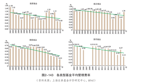 众所周知的是,在公募还没开启降费的年代,混合型基金是当之无愧的现金奶牛。根据基金业协会年报数据统计,仅就管理费率而言,混合基金在2019年平均管理费率为1.39%,为债券基金的5倍以上。换句话来说,一只100亿规模的混合基金产品的创收能力和500亿规模的债券基金相差无几。