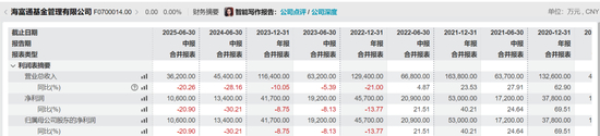 截至上半年,海富通基金营业收入和净利润分别为3.62亿元、1.06亿元,同比分别下降20.26%、20.9%,已经是连续三年半年报出现业绩下滑。从已公布的整年度业绩看,2021-2023年其营业收入分别为16.38亿元、12.94亿元、11.64亿元,净利润分别为5.3亿元、4.57亿元、4.17亿元。