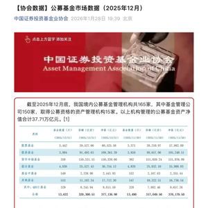 1月28日,中国证券投资基金业协会最新发布的公募基金市场数据显示,截至2025年12月底,我国公募基金总规模达37.71万亿元,再创历史新高。和2024年底的32.825万亿元相比,去年规模增加4.885万亿元,增幅达14.88%。