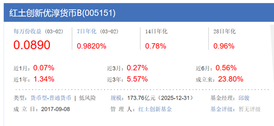 其中,邱俊在管的最大一只基金为红土创新优淳货币B,截至2025年末,该基金规模为173.76亿元。该基金在2020年5月开始交由邱俊管理,成立以来的任期回报为23.80%。