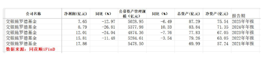 年报显示,老牌银行系公募交银施罗德基金2025年实现净利润7.65亿元,较2024年的8.79亿元下降12.97%;同期公募行业经营情况整体回暖,多家银行系公募净利增长。而这已是该公司净利润连续第四年下滑:据同花顺数据,2022年~2024年,公司净利润依次下滑11.48%、24.04%与26.81%。