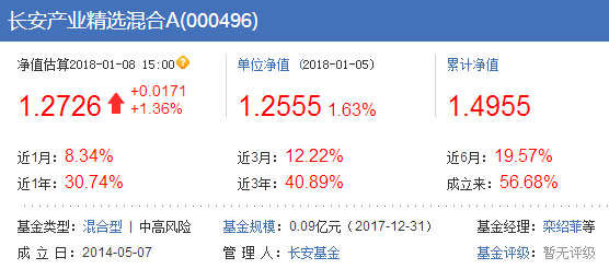从金元顺安新经济、东吴阿尔法、长安产业三只基金的收益情况看,近1年、近6个月、近3个月以及近1个月的数据也极为相近。截至2017年12月31日,三只基金规模分别为1.42亿元、1.41亿元、0.09亿元。