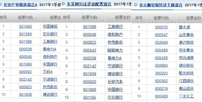 《国际金融报》记者调查获知,金元顺安新经济主题、东吴阿尔法灵活配置、长安产业精选混合这三只分别属于三家不同基金公司、不同基金经理的基金却出现了神奇一幕:三只基金2017年度第三季度前十大重仓股100%相同,二季度80%以上相同;一季度其中两只基金70%相同。