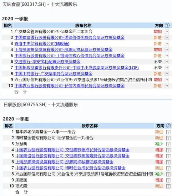 各路资金一季度也涌入复合调味料类公司,天味食品、日辰股份前十大流通股股东榜中,几乎清一色是新进机构股东。