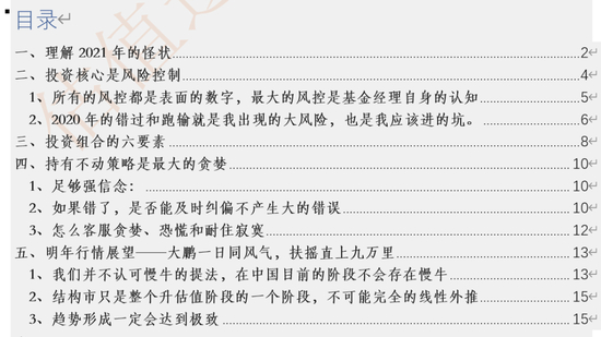 2021年是十分不平淡的一年,这一年打掉了太多的信仰,颠覆了很多人的价值观。白酒的泡沫、恒瑞的下跌、新能源的坚挺、低估值策略的全面挨揍、教育行业的覆灭、互联网巨头的陨落,指数级别没有太大波动,但是内部潮涌,只要踩一个坑,那两年就白干。用混乱来形容最近两年不为过,这种混乱是一个时代终结、一个全新时代开启的特征,所以才有这样的怪状,在面对投资这样复杂的环境,有什么好的应对办法吗?唯一的办法就是风险控制。