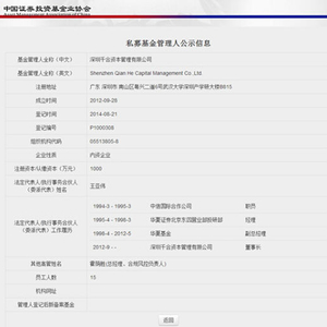 登记资料显示,千合资本的法定代表人/执行事务合伙人(委派代表)为王亚伟,成立时间为2012年9月28日,登记时间为2014年8月21日。目前员工总数15人,霍荫胜为该公司总经理兼合规风控负责人。