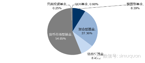 图9:当前我国基金产品结构分布显示,货币基金占据主导