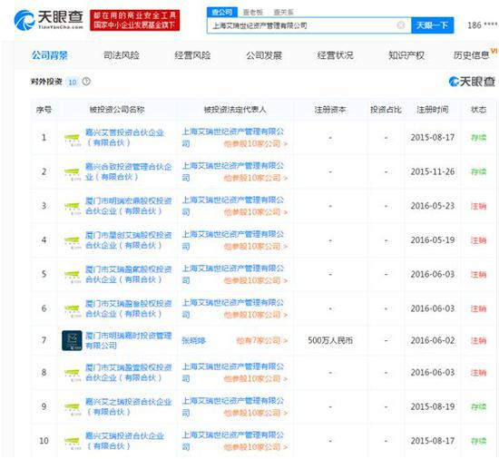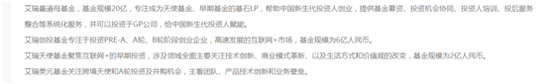 在某投融资网站上显示,艾瑞系下的资管公司,发行过艾瑞量道母基金,基金规模20亿;艾瑞创投基金,基金规模6亿;艾瑞天使投资基金,基金规模2亿。